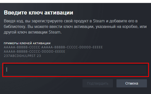 В открывшееся окно вставьте заранее скопированный ключ и нажмите кнопку подтверждения, после чего игра будет добавлена на ваш аккаунт: